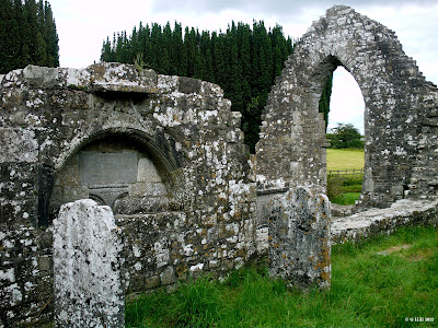 You enter across a small stream and bridge and the first thing you encounter are the ruins of the small parish Church of Newtown Clonbun.This is notable as it contains the 16th century tomb and effigies of Sir Luke Dillon and his wife, Lady Jane Bathe. Dillon was Chief Baron of the Exchequer during Elizabeth I reign.